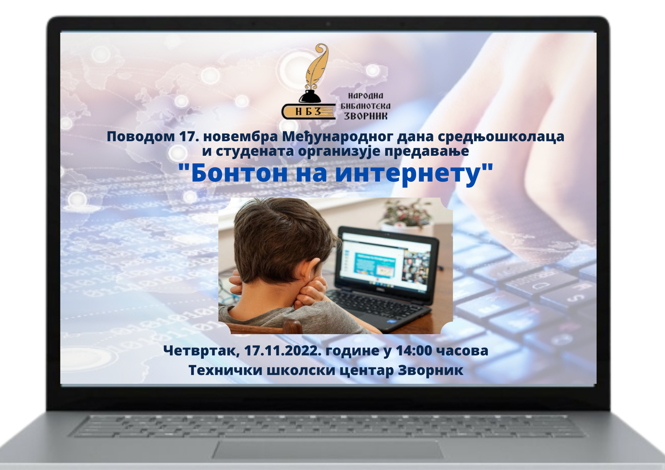 Narodna biblioteka Zvornik povodom 17. novembra, Međunarodnog dana srednjoškolaca i studenata organizuje predavanje "Bonton na internetu".