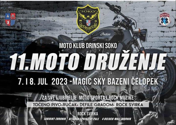 Moto klub”Drinski soko” iz Zvornika 7. i 8.jula organizuje tradicionalno “11. Moto druženje” na Magic Skay bazenima u Čelopeku.