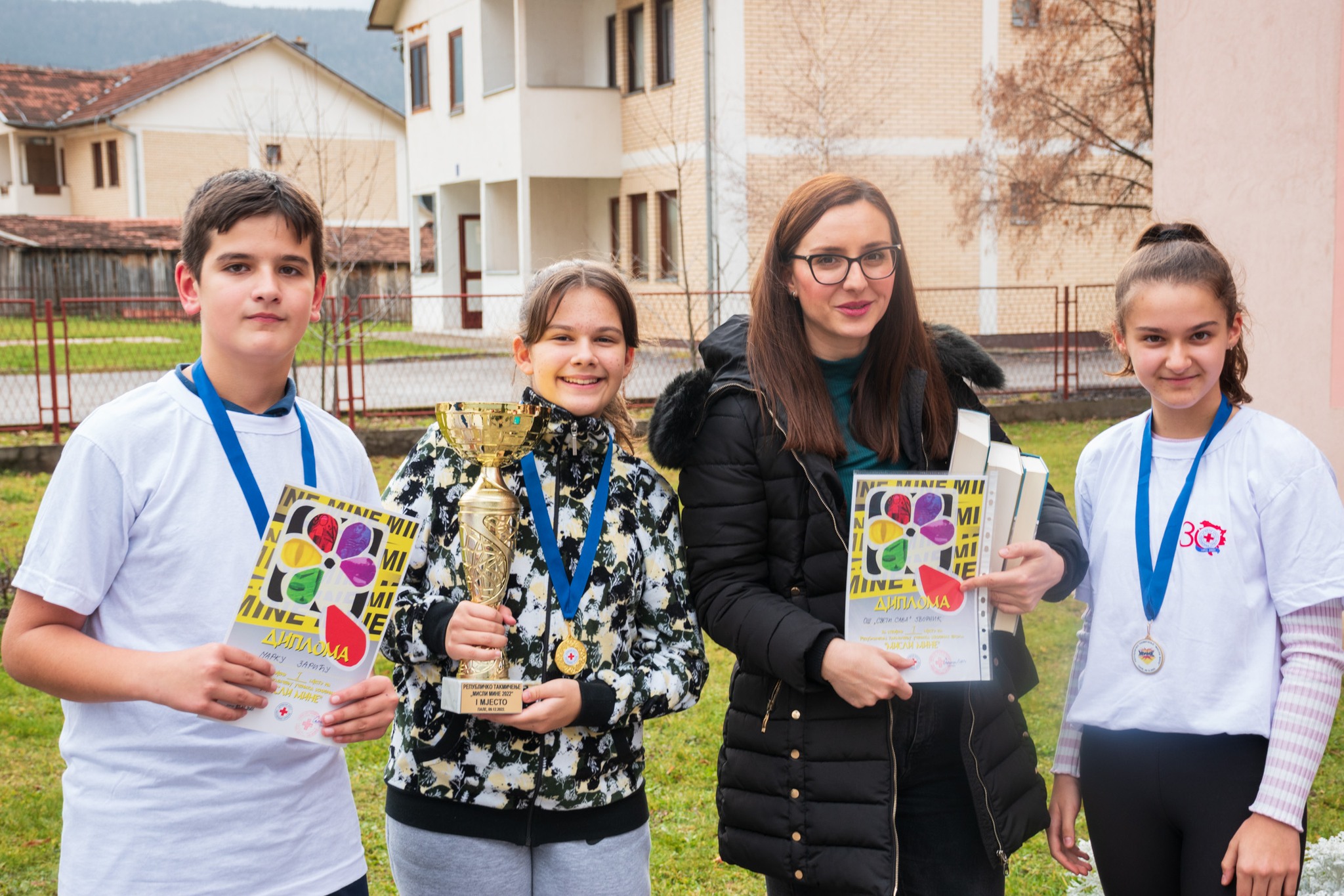 Učenici Osnovne škole „Sveti Sava“ iz Zvornika osvojili su prvo mjesto na Republičkom takmičenju iz upozoravanja na opasnost od mina „Misli mine 2022″, koje je održano na Palama.