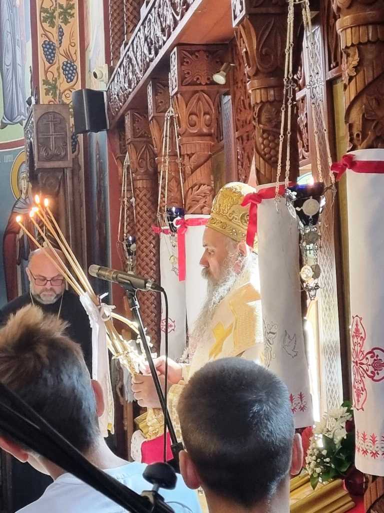 Hram Rođenja Svetog Jovana Krstitelja proslavlja krsnu slavu crkve – Ivanjdan, Svetu arhijerejsku liturgiju, u prepunom hramu, služi Vladika Fotije uz sasluženje više sveštenomonaha, sveštenika i đakona.