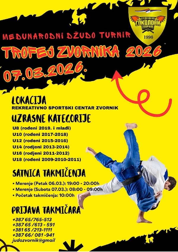 Za vikend je Omladinski džudo klub „Sokolovi“ iz Zvornika domaćin klupskog turnira u đudou „Trofej Zvornika“. Zvornički đudisti ovaj turnir organizuju već osmu godinu u Rekreativno sportskom centru.
