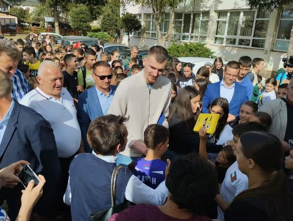 Posjetu svojoj školi iskoristio je da fiskulturnoj sali uruči vrijednu donaciju u vidu sportskih rekvizita i opreme, a kao deo aktivnosti koju sprovodi Fondacija Mocart iz Beograda.