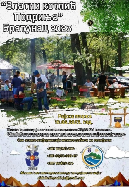 U okviru 15. Međunarodnog sajma poljoprivrede, poljoprivrede i turizma ''Dani maline 2023'' koji se u Bratuncu održava 9. i 10. juna, održaće se i gastro manifestacija i takmičenje u spremanju riblje čorbe pod nazivom ''Zlatni kotlić Podrinja 2023''.