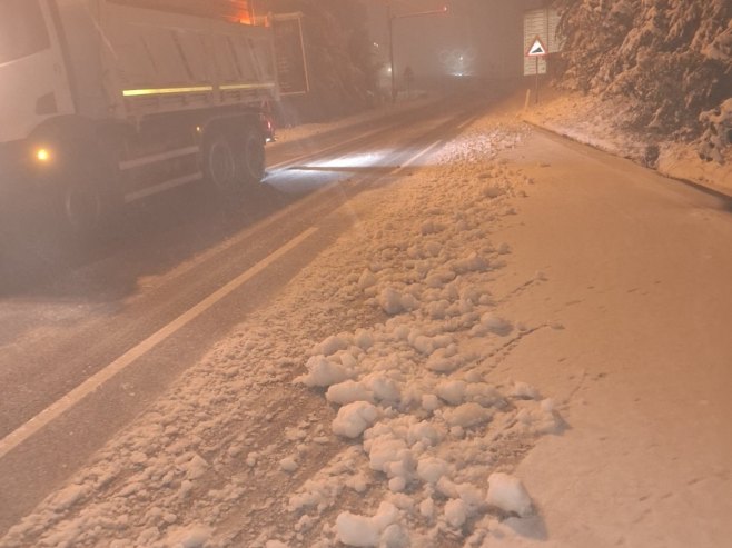 Saobraćaj se u većem dijelu Republike Srpske i FBiH odvija uz promjenljive vremenske uslove, sa slabim snijegom u višim i kišom u nižim predjelima, a na kolovozu od Sokoca do Vlasenice osim snijega ima i polomljenih grana, saopšteno je iz Auto-moto saveza Srpske.