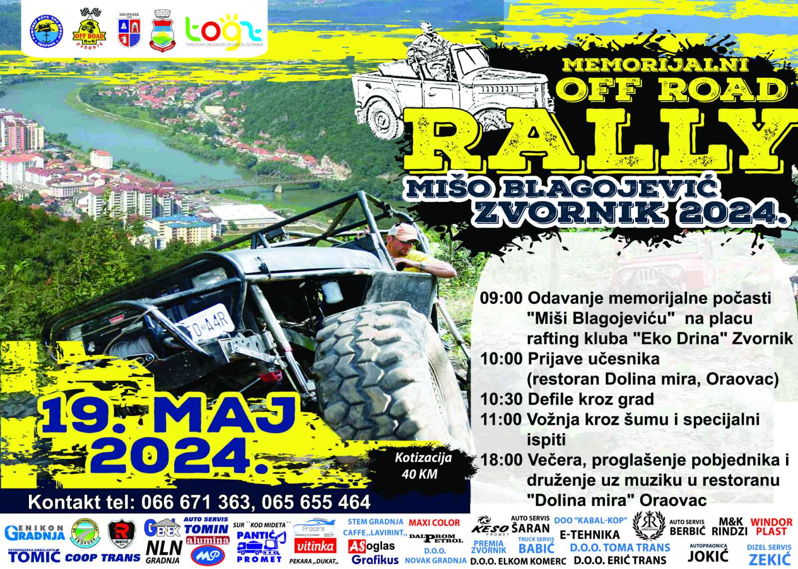 Polazak kolone i defile kroz grad Zvornik u 10:30h. Po završetku defilea voziće se trasa džipijade: Karakaj, Radakovac, Šćemlija, Snagovo, Crni Vrh, Oraovac.
