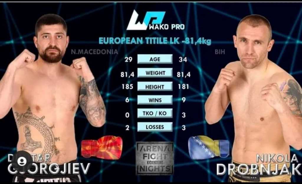 Posjetioci će večeras imati priliku da pogledaju sedam uvodnih mečeva, pred glavni meč za titulu prvaka Evrope u disciplini “ Low kick” u koje se sastaju Zvorničanin Nikola Drobnjak i Dimitri Gjorgijev iz Sjeverne Makedonije.
