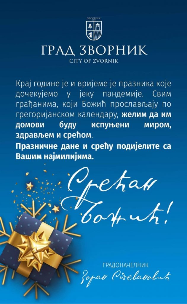 građanima, koji Božić proslavljaju po gregorijanskom kalendaru, želim da im